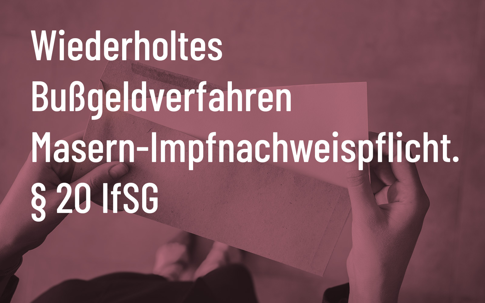 Wir arbeiten seit 2021 täglich mit Bußgeld- und Verwaltungsverfahren im Bereich des Infektionsschutzrechts. Seit 2021 haben wir weit über 1.000 Mandantinnen und Mandanten zur einrichtungsbezogenen Impfpflicht (§ 20a IfSG) und zur Masernnachweispflicht nach § 20 IfSG beraten und vertreten. Sie profitieren dadurch von Formulierungen und Argumenten, die in der Praxis bereits vielfach funktioniert haben.